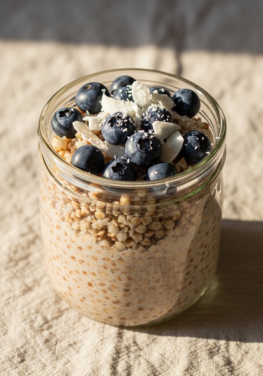 - Mix Ingredients: Combine buckwheat, milk, cinnamon, and chia seeds in a jar or bowl. Stir well.