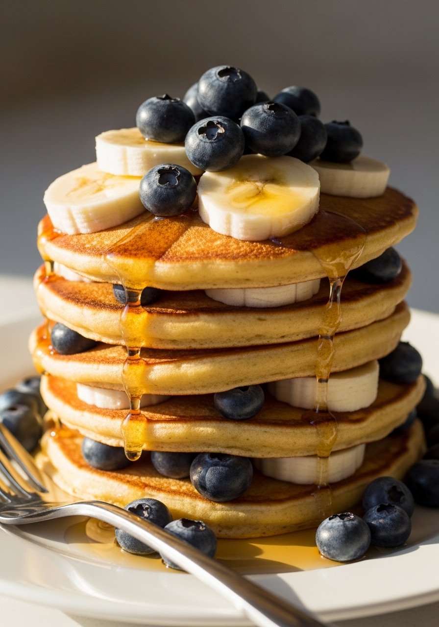 Gluten-free pancakes made with almond flour and mashed banana for gentle sweetness. Light texture and quick to make for a calming breakfast.