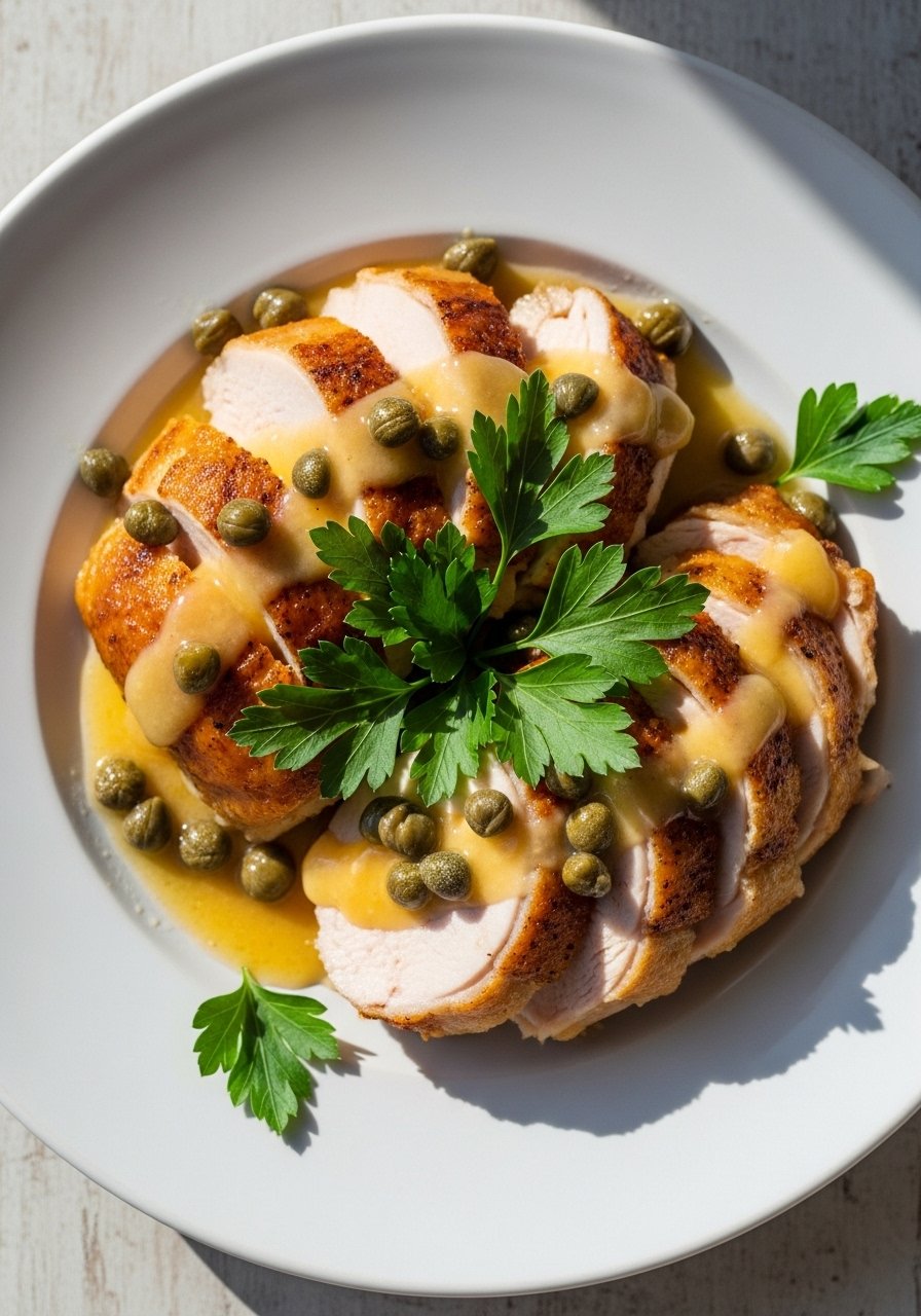 - Finish: Spoon the pan juices over chicken and garnish with parsley.