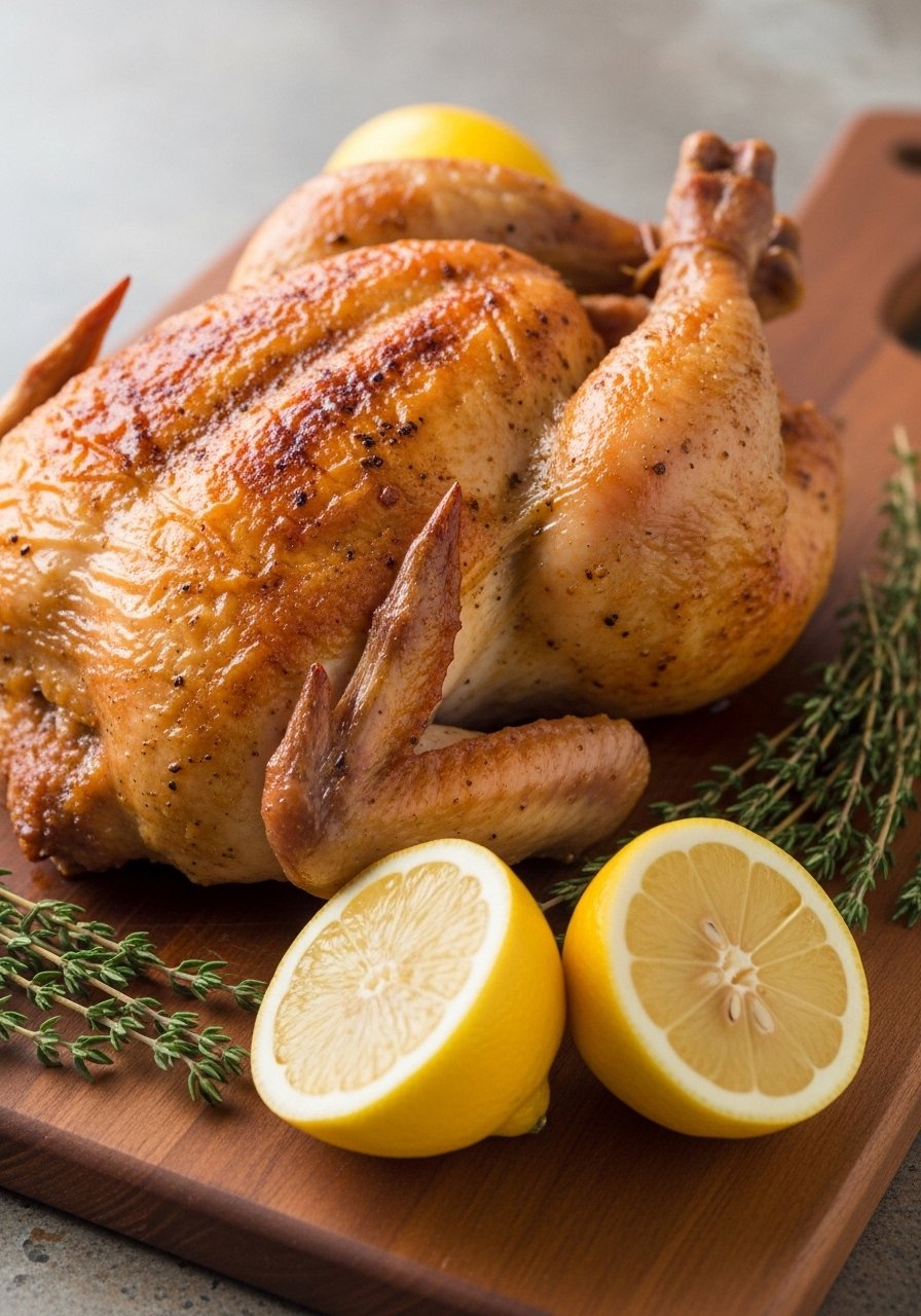 - Rest & Serve: Tent with foil and rest 10–15 minutes. Squeeze the remaining roasted lemon over chicken before carving.
