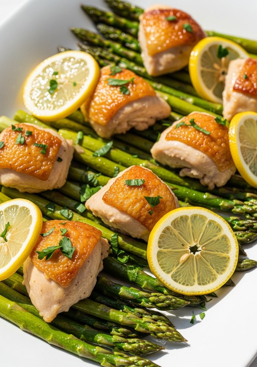 - Serve: Plate chicken with asparagus and a squeeze of fresh lemon.