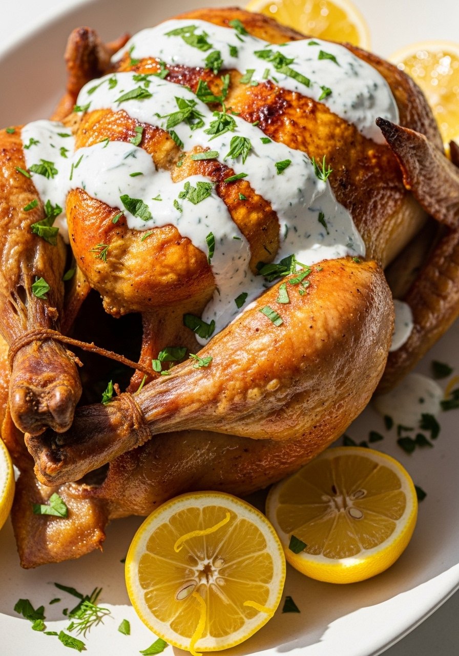 13. Lemon Garlic Yogurt Marinated Roasted Chicken