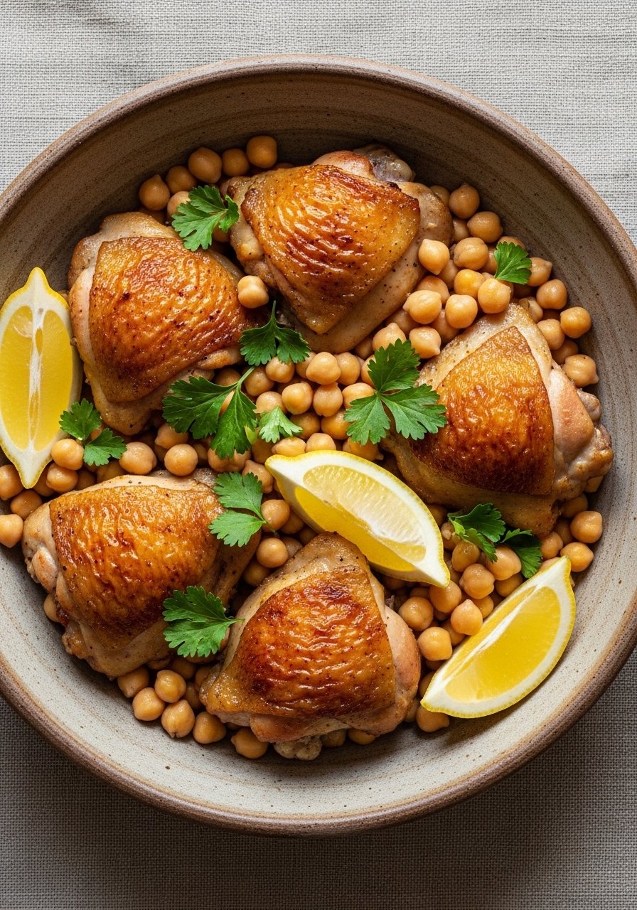 - Add Chicken: Nestle chicken and lemon slices among chickpeas. Drizzle more oil and season.