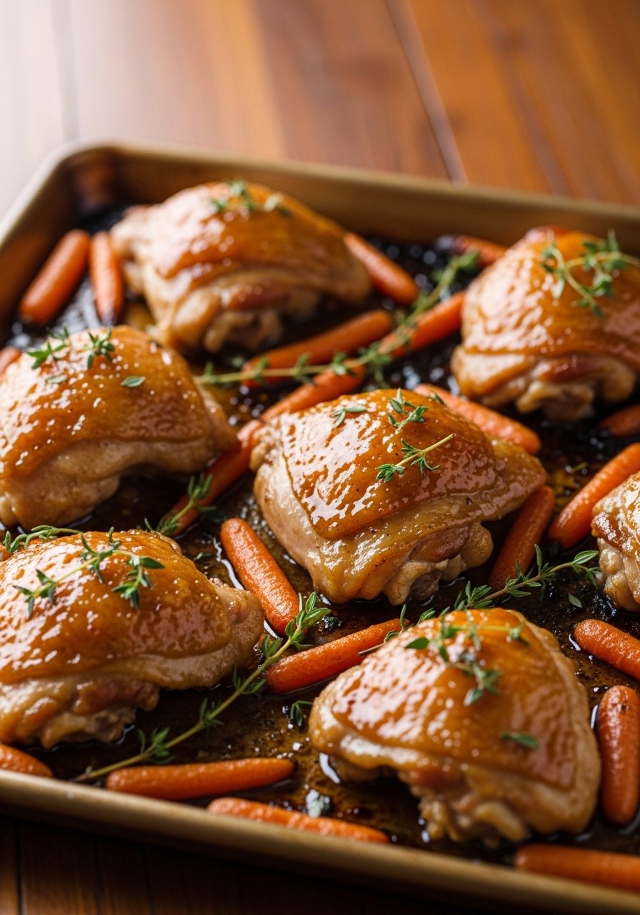 Sweet and tangy honey-mustard coats chicken and carrots for a sticky, savory finish. Carrots caramelize to bring natural sweetness and color. Simple pantry flavors make prep fast.