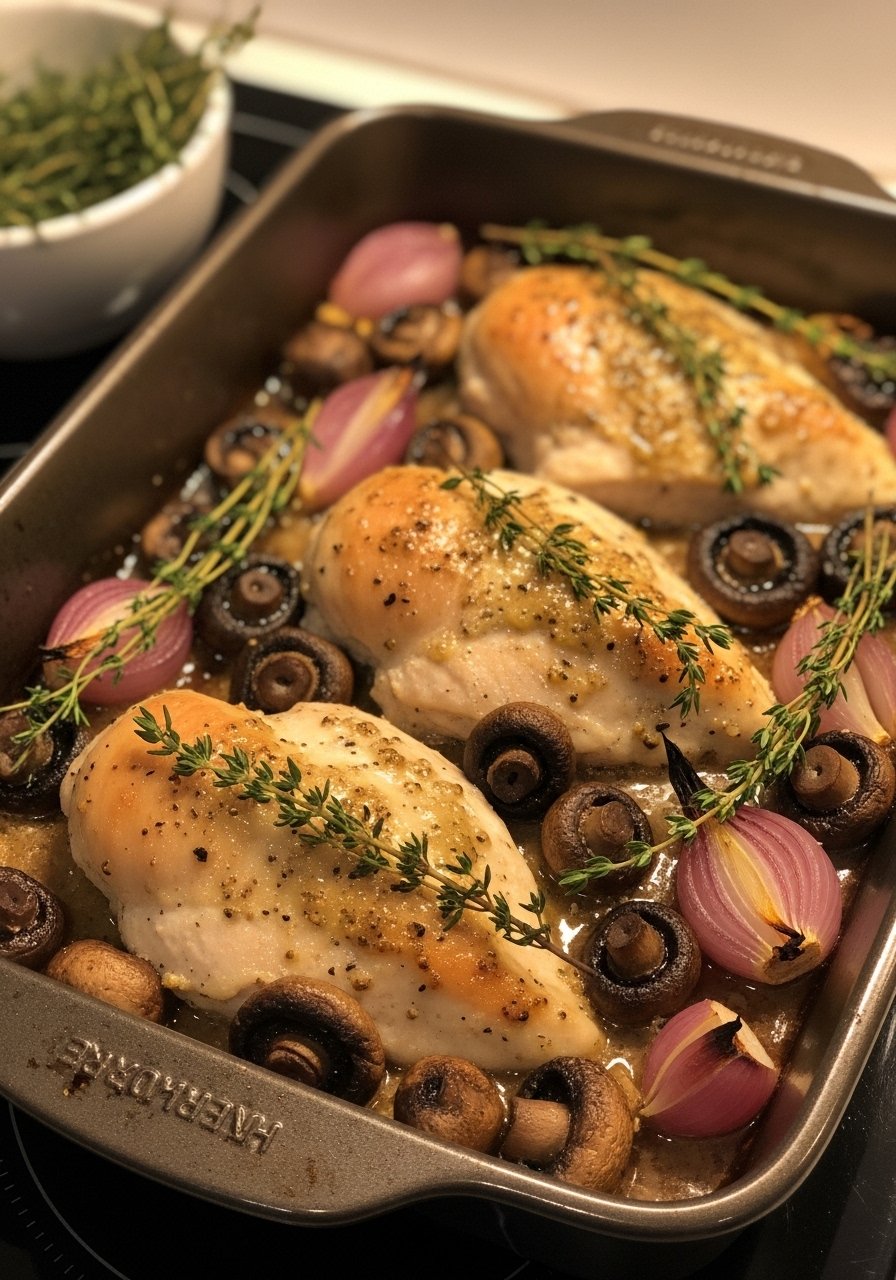 - Rest & Serve: Let chicken rest 5 minutes. Garnish with thyme and spoon pan juices over top.