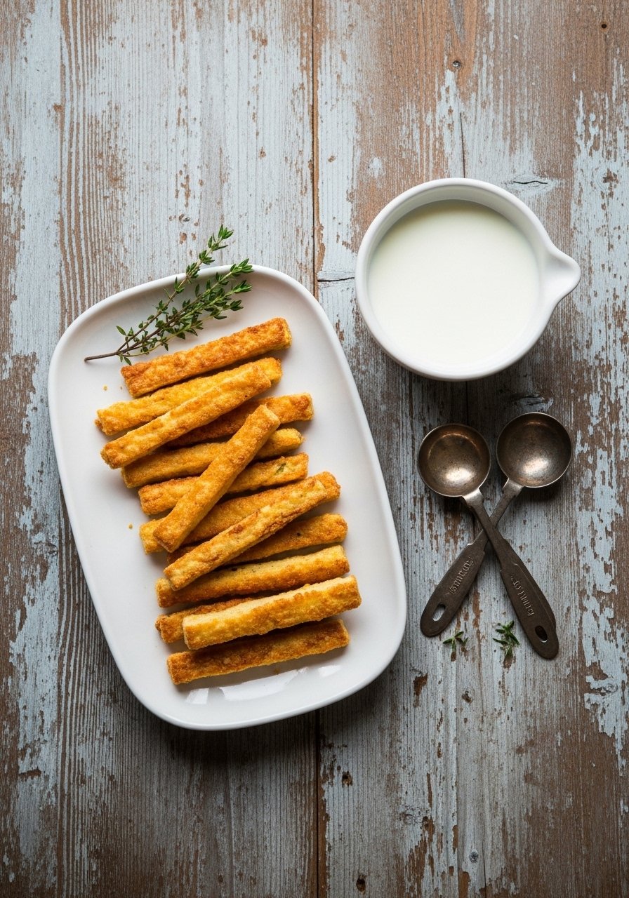 - Dredge and fry strips 3–4 minutes per side until 165°F. Drain on a rack.