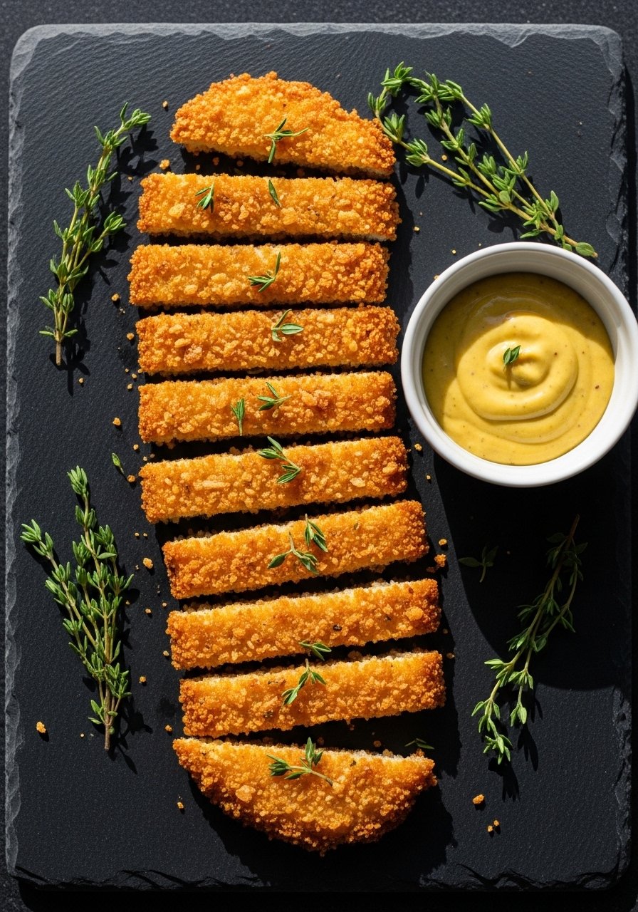 12. Panko Chicken Strips with Herbed Dijon Crust