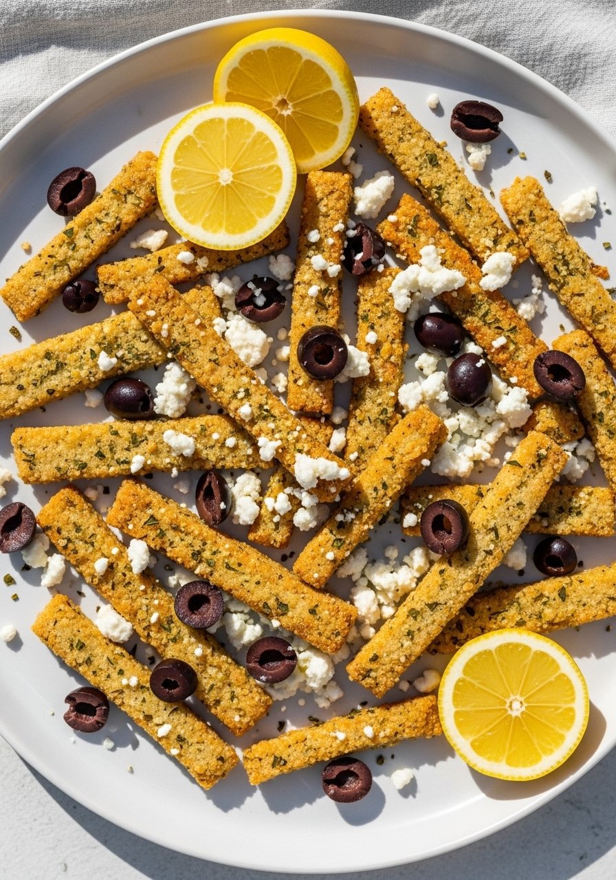 Bright Mediterranean herbs, lemon zest, and a hint of feta in the panko deliver Mediterranean vibes in a crunchy strip.