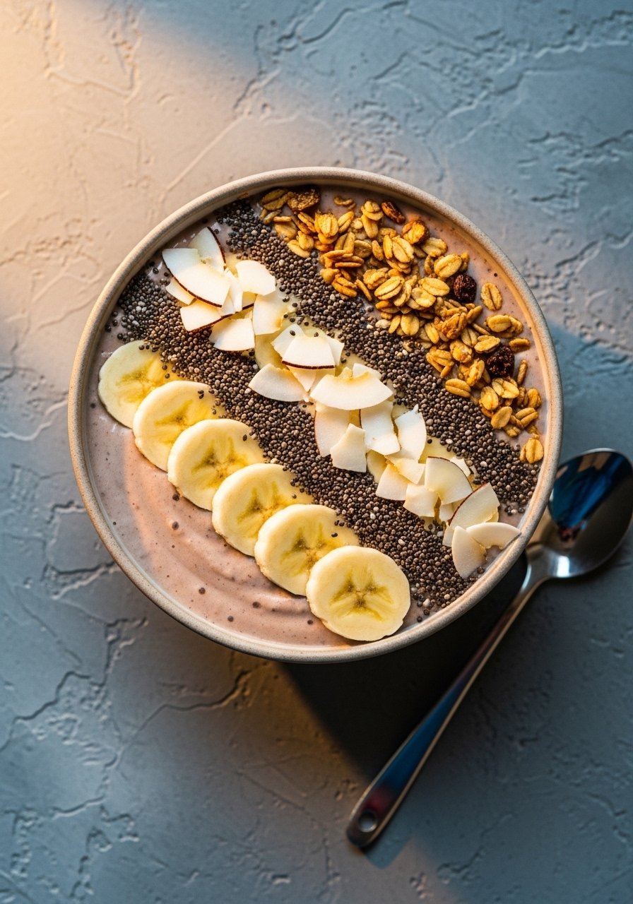 - Top & Serve: Spoon into a bowl and add granola, chia, and fresh fruit. Eat immediately for best texture.