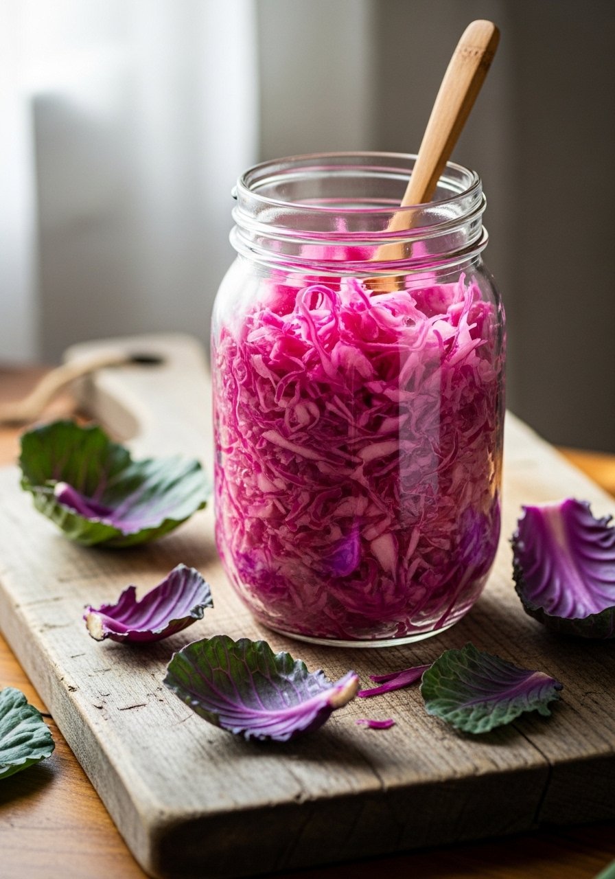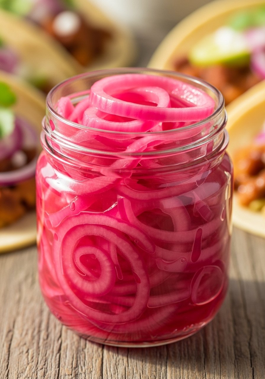 Quick fermented red onions add tang and crunch to salads and tacos. They’re fast to make and still offer beneficial bacteria from a short ferment.