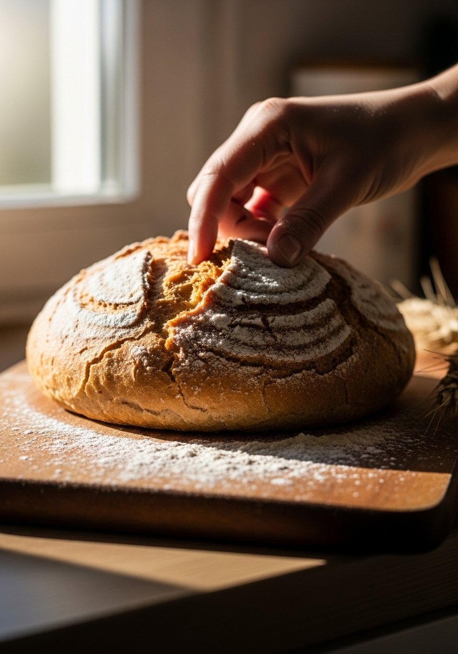 - Bake: Preheat Dutch oven to 475°F (245°C). Score and bake covered 20 minutes, uncovered 20–25 minutes until deep brown. Cool before slicing.