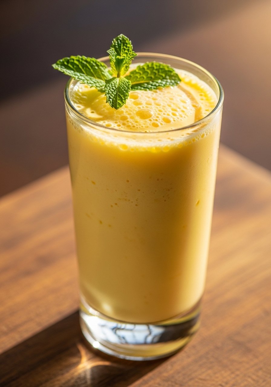 A mango lassi blends yogurt into a silky probiotic drink. It’s cooling, slightly sweet, and pairs well with spicy meals or as a snack.