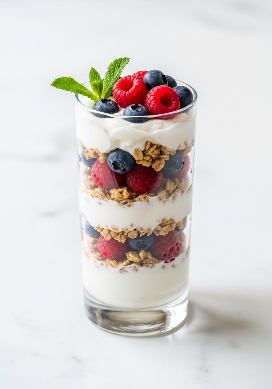 Creamy Greek yogurt layered with juicy berries and crunchy granola makes a sweet-tart breakfast or snack. The texture contrast is irresistible and easy to assemble in minutes.