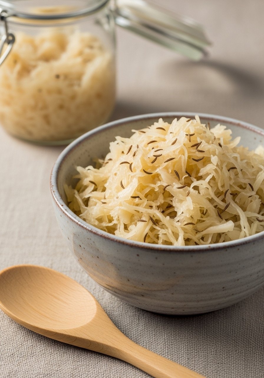 Crunchy, tangy sauerkraut is simple to make and bright on sandwiches, sausages, or salads. Fermentation creates a crisp texture and lively flavor.