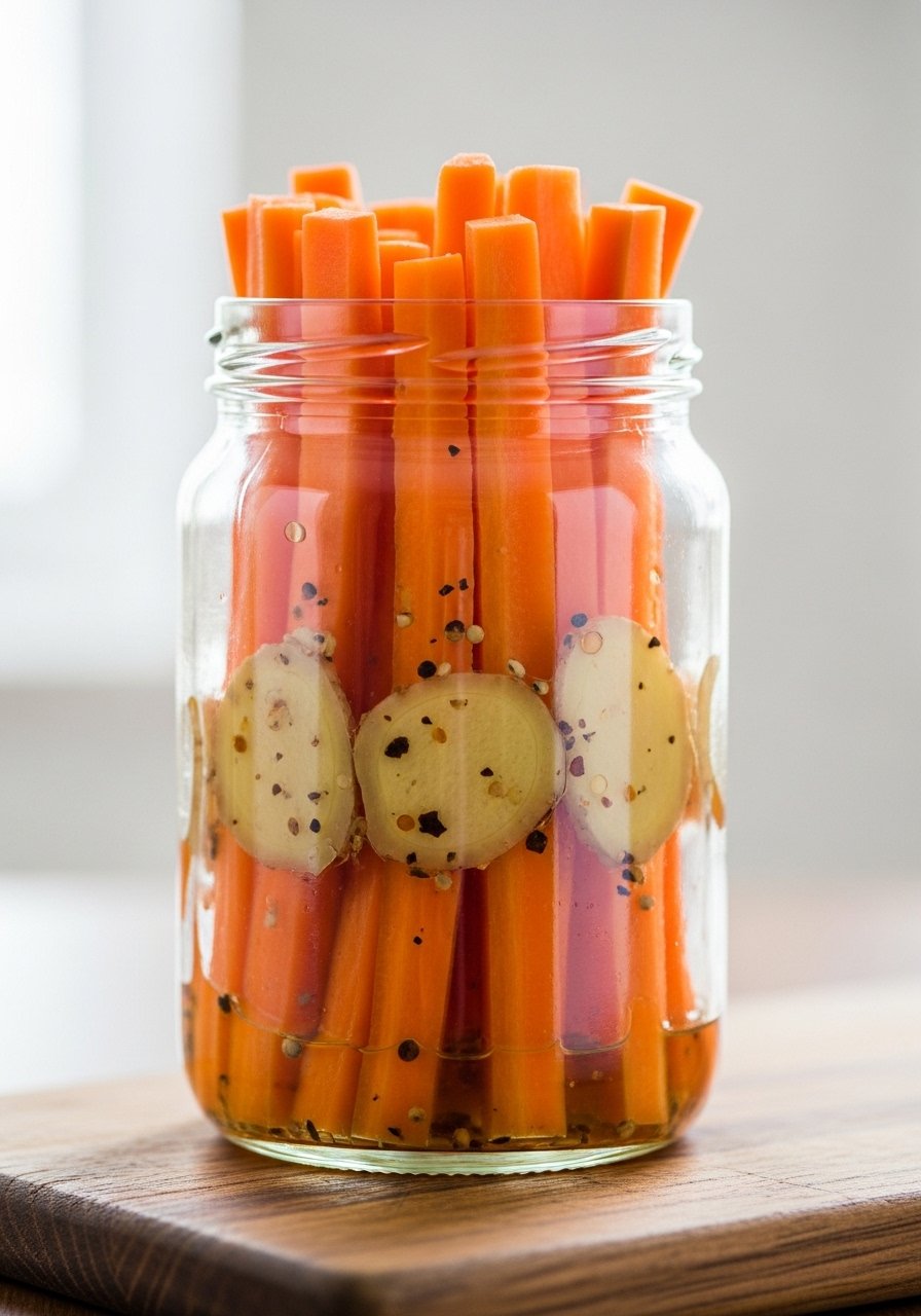 - Pack Jar — Press into a jar, ensuring vegetables are submerged.