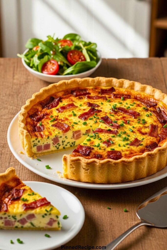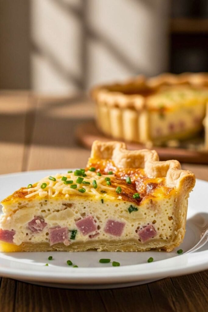 The result is a golden, custardy quiche with a perfect balance of salty, creamy, and savory flavors.