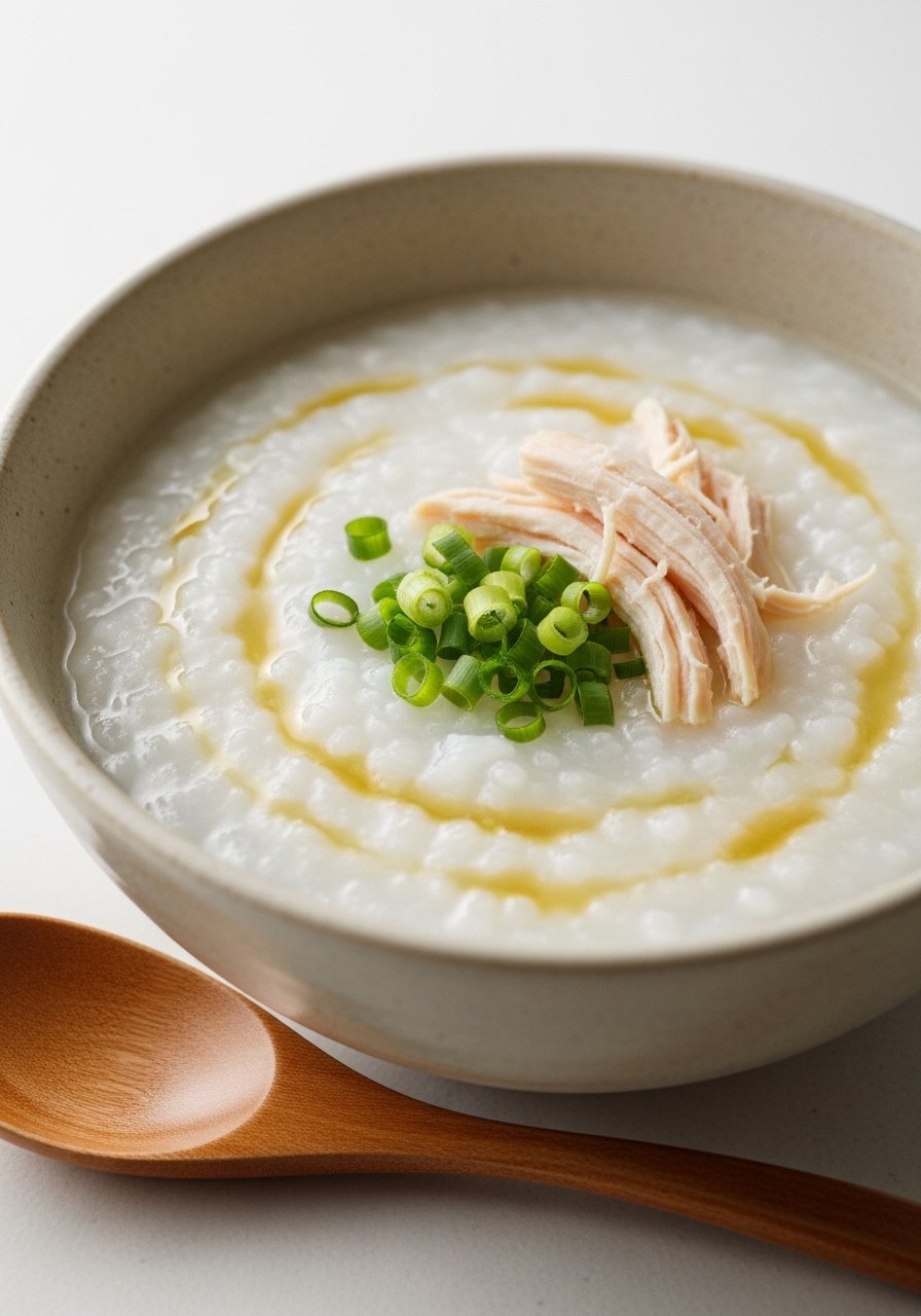 Comforting, silky congee is gentle and hydrating. It has a neutral taste, soft texture, and you can add tiny bits of plain protein for extra comfort without upsetting your stomach.