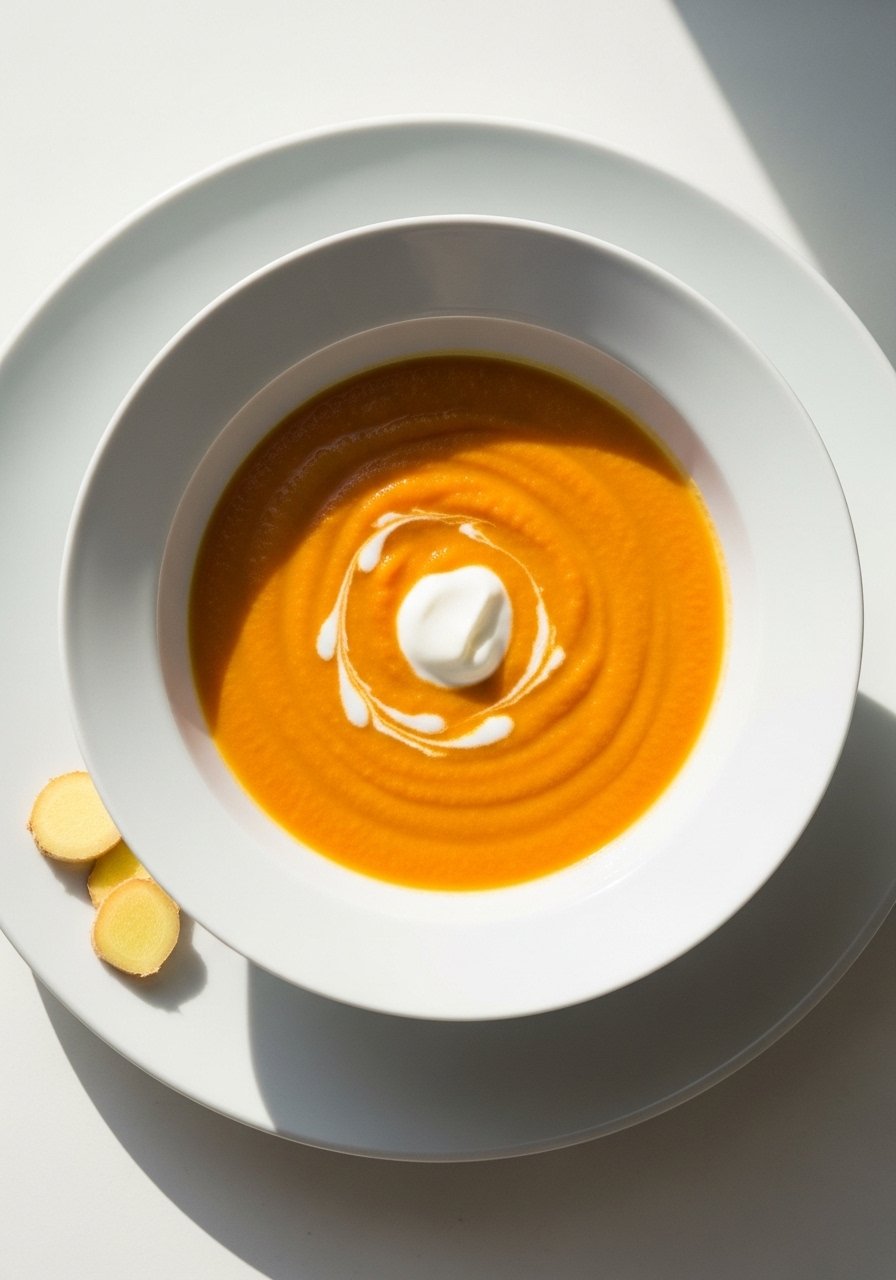 A silky carrot and ginger puree is nourishing and smooth—easy to swallow and mildly spiced for digestion. Adjust ginger to tolerance.