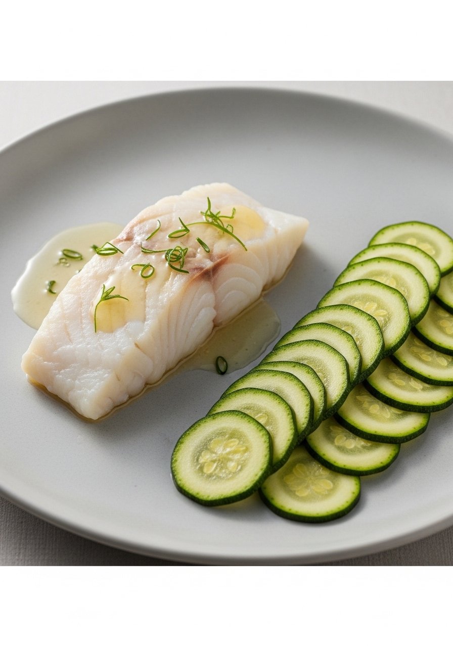 Delicate steamed white fish is easy to digest and pairs with tender zucchini. Steam gently to keep the fish flaky and mild.