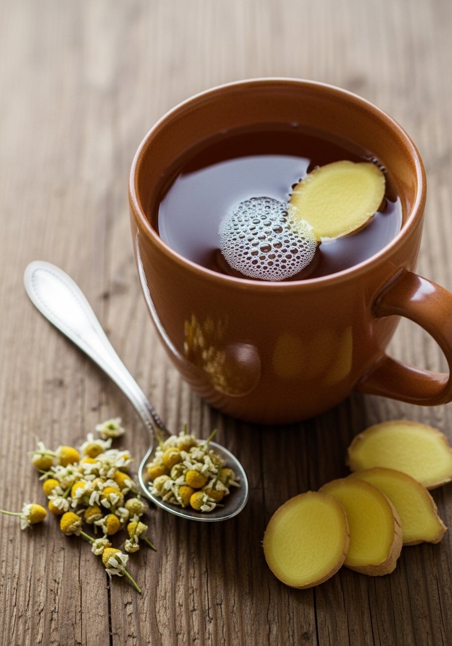- Brew Tea: Steep: Place chamomile and ginger in hot water and steep 4–5 minutes.