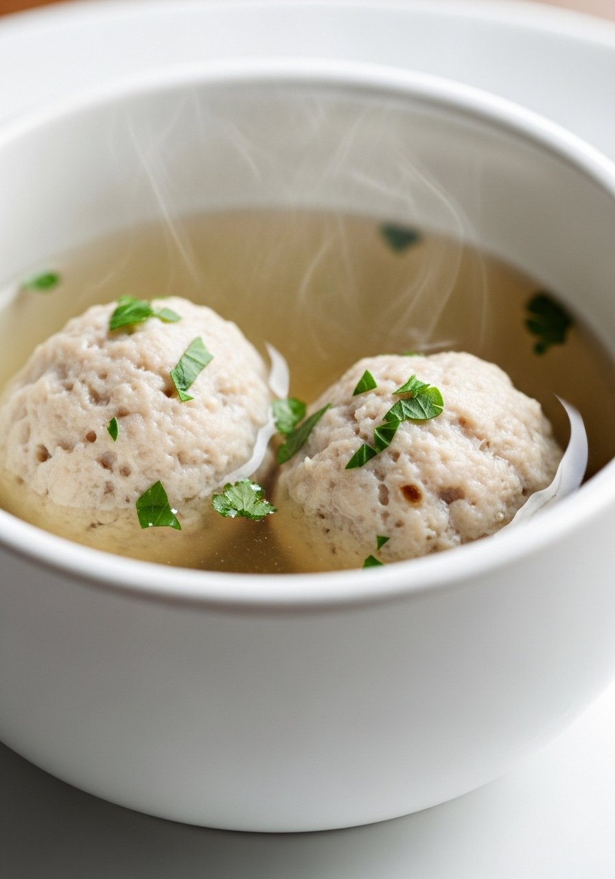 - Poach: Drop meatballs into simmering broth and cook 8–10 minutes until cooked through.
