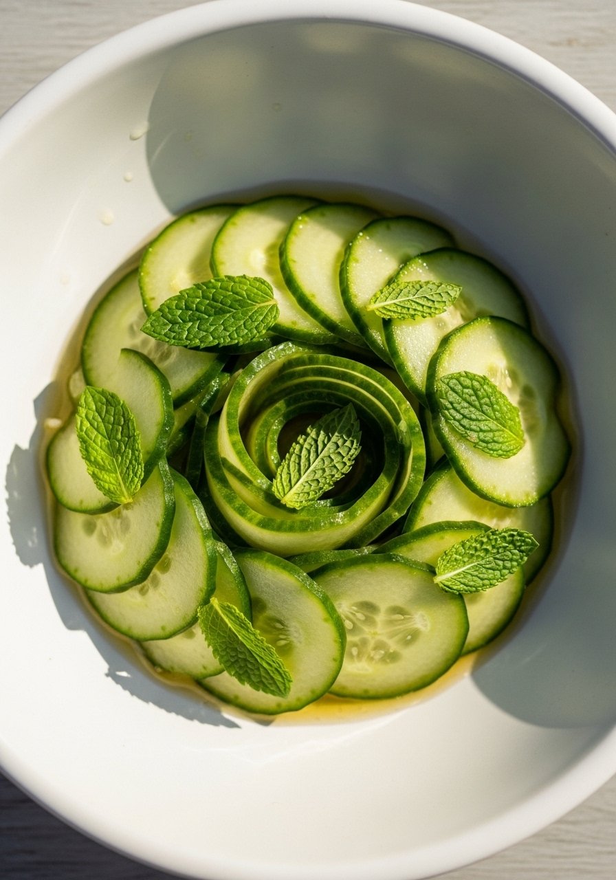 - Combine: In a bowl, mix cucumber, mint, lemon juice, and a pinch of salt.