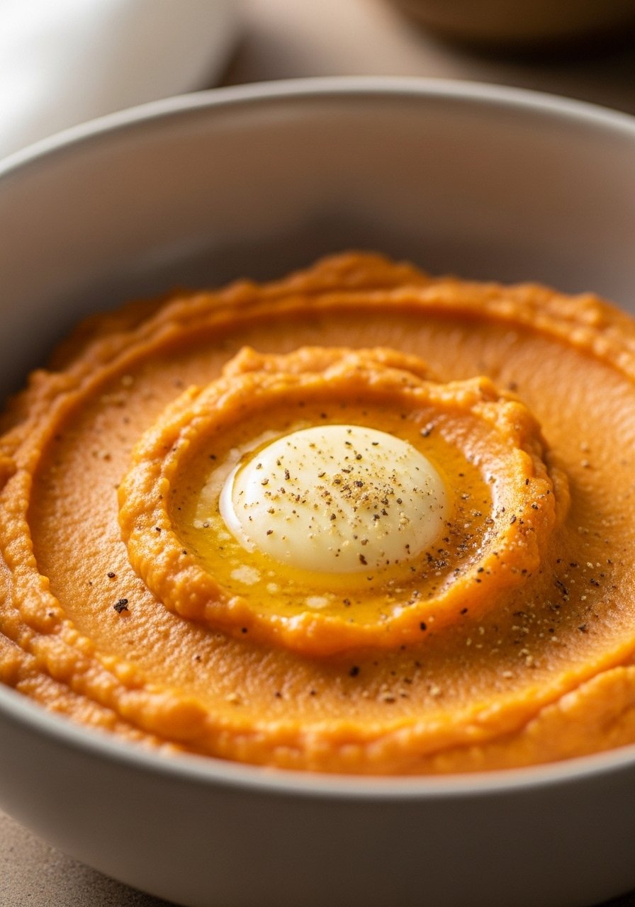 Sweet potato mash is creamy and slightly sweet, with a hint of ginger to soothe. Keep ginger minimal to avoid overpowering the dish.