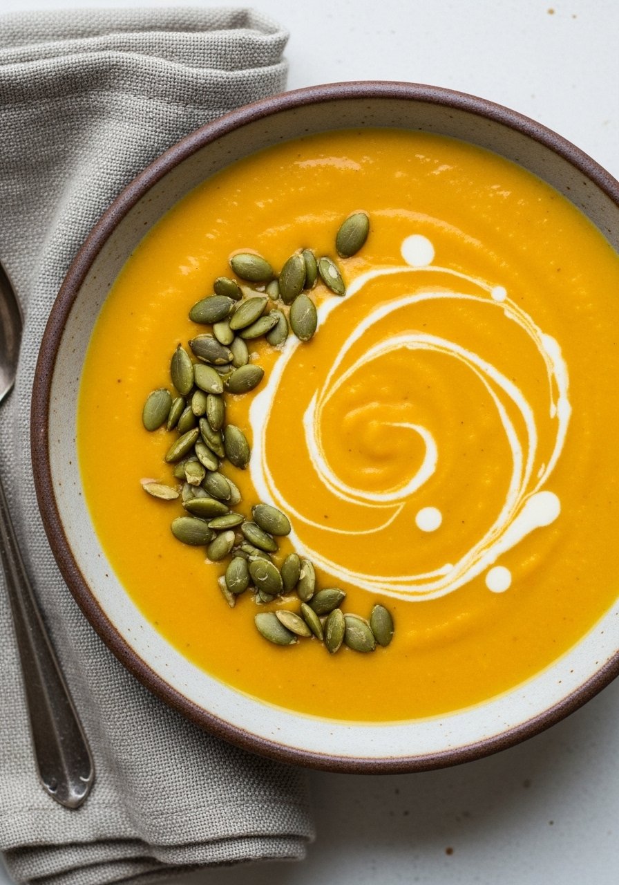 - Simmer and blend: Add roasted squash and broth, simmer 8–10 minutes. Use an immersion blender (try an Immersion Blender) or countertop blender to puree until silky.