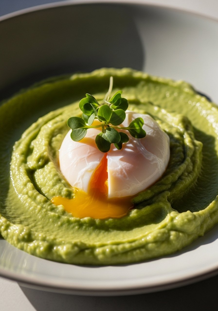 - Assemble: Spoon purée onto plate, top with poached egg. Break yolk to mix for a soft, silky texture.