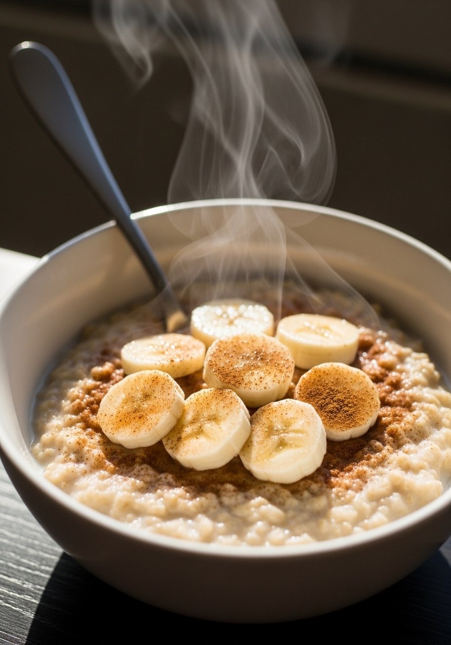- Add banana: Stir in mashed banana, butter, cinnamon, and salt. Cook 1–2 more minutes until fully incorporated.