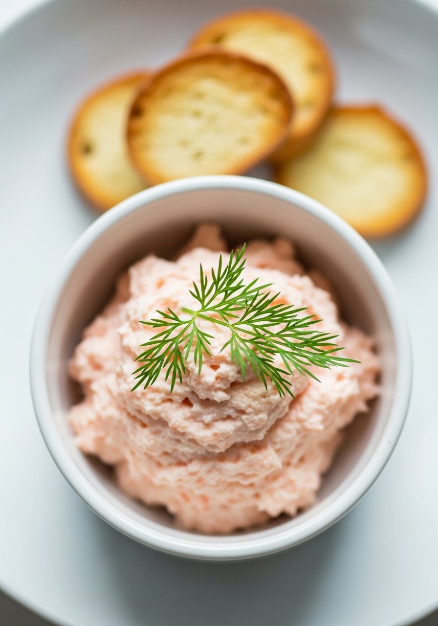 A light smoked salmon mousse blends fish, cream cheese, and lemon into a silky spread. It’s flavorful, soft, and easy to eat on its own or with very soft crackers.
