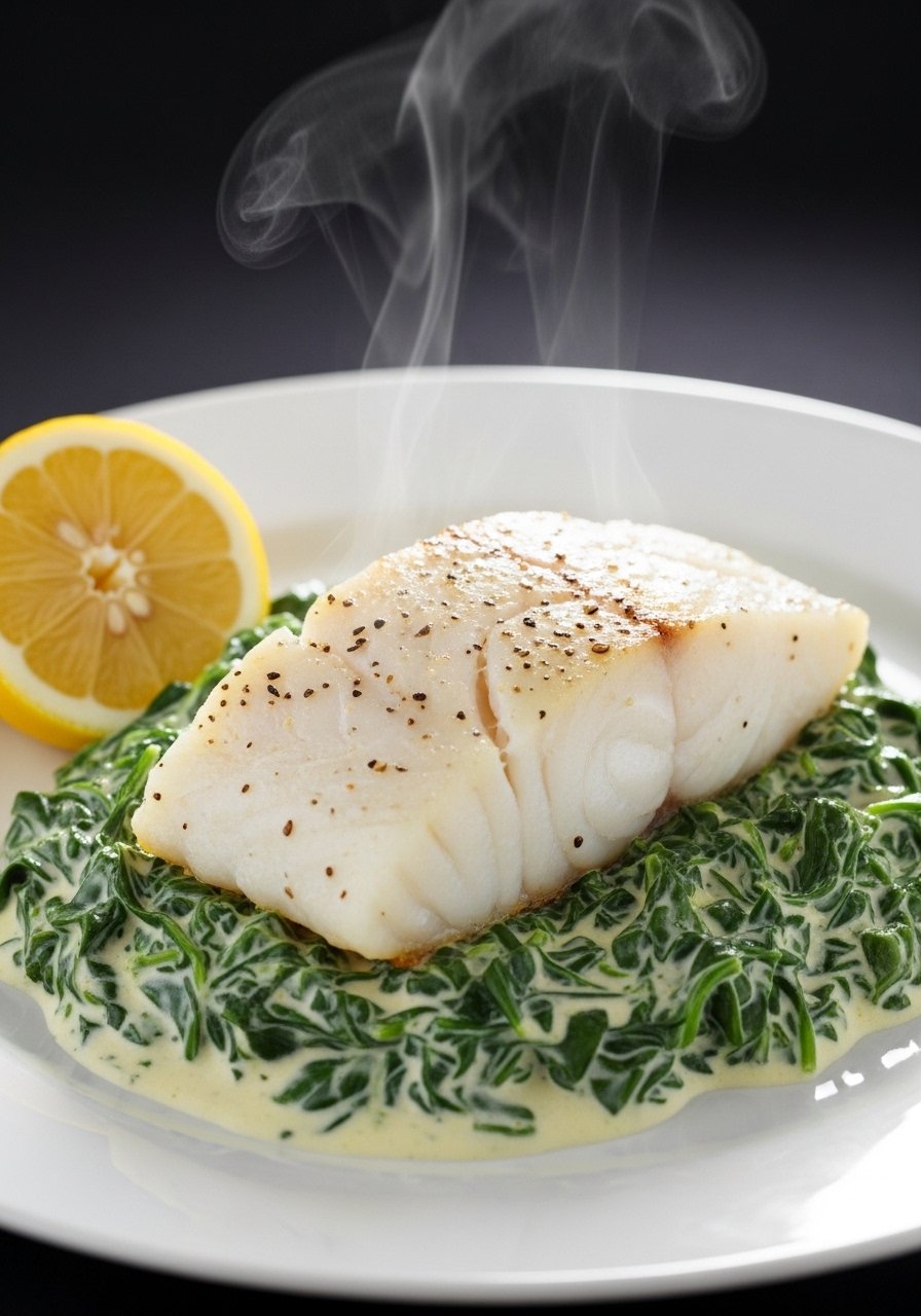 - Serve: Place baked cod atop creamed spinach, squeeze lemon. Both components should be very soft and easily separable with a fork.