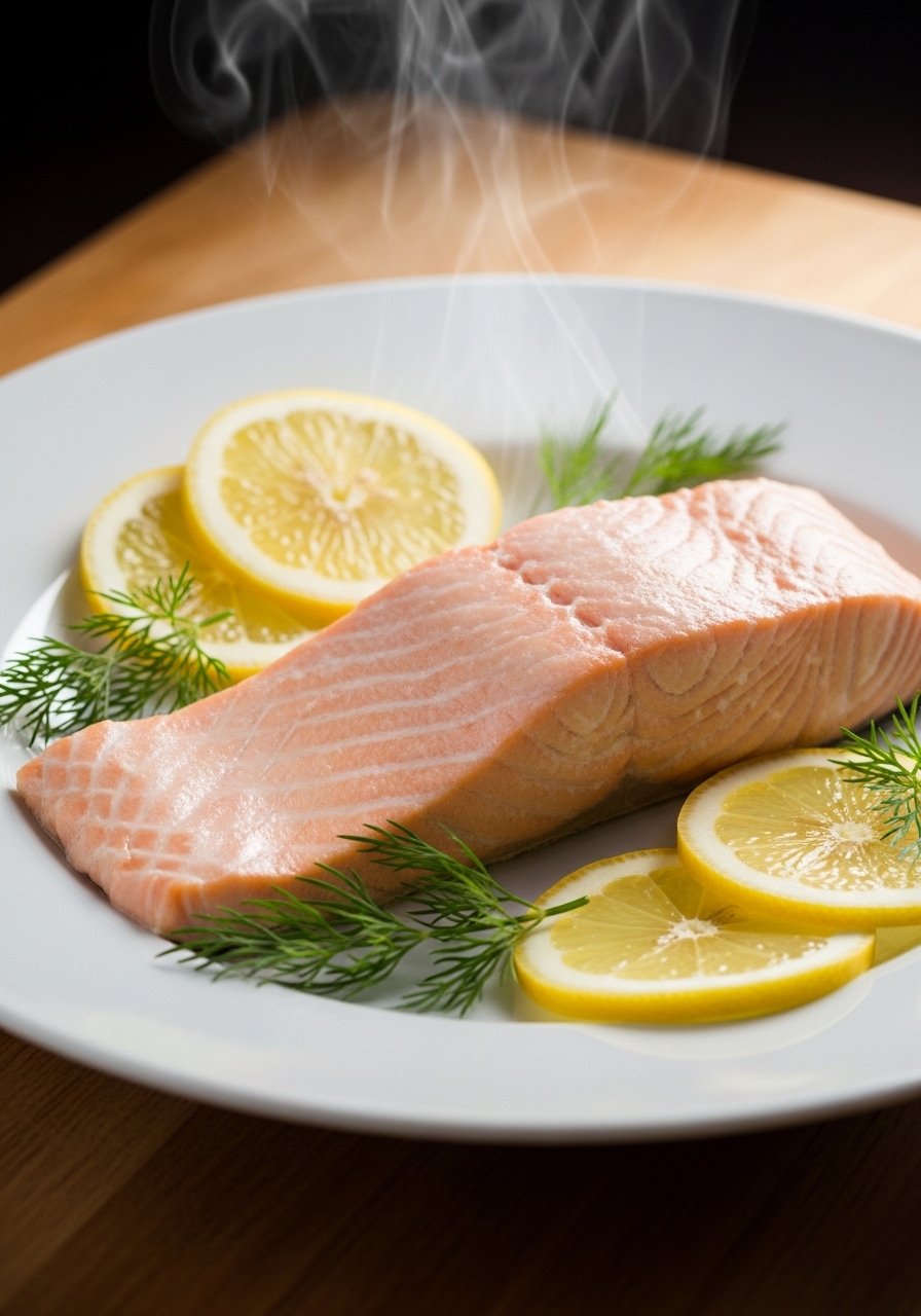 Poached salmon flakes easily and stays moist—great for delicate chewing. Mild, buttery flavor and soft texture make it a nutritious, easy meal.