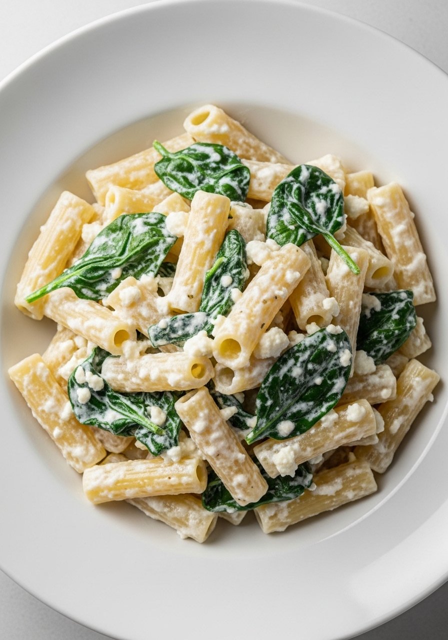 - Combine: Add pasta and chopped spinach, toss until coated and warm.
