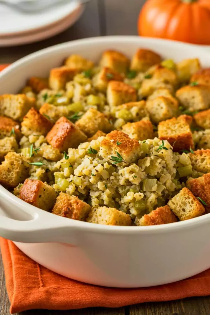 Transfer everything into a greased baking dish. Bake at 350°F (175°C) for about 30–35 minutes until the top is golden and slightly crisp. Serve warm as a side to turkey.