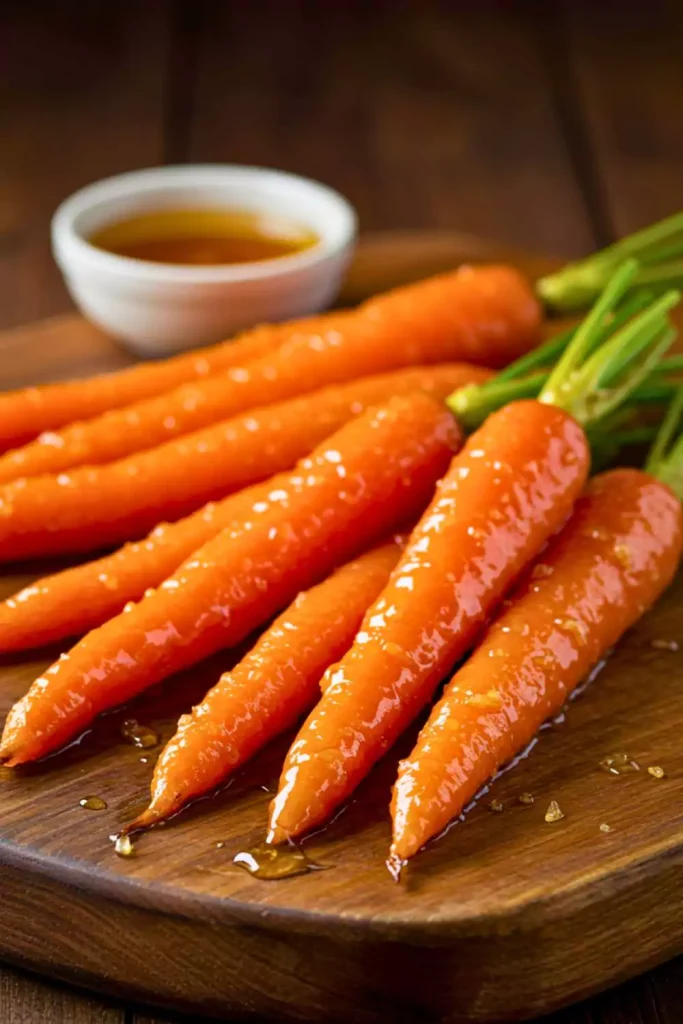 These carrots are soft, shiny, and sweet. The honey brings out the natural flavor of the carrots. They add even more color to your dinner spread.