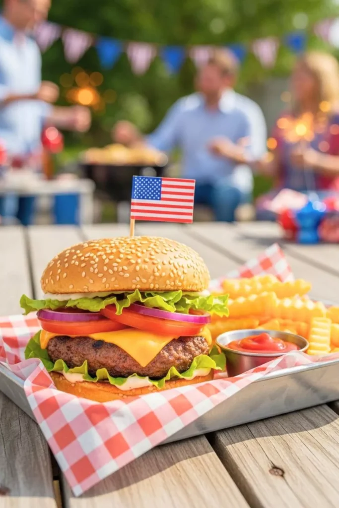 Nothing says “USA” like a juicy burger. It’s simple, crowd-pleasing, and perfect for backyard barbecues honoring veterans.